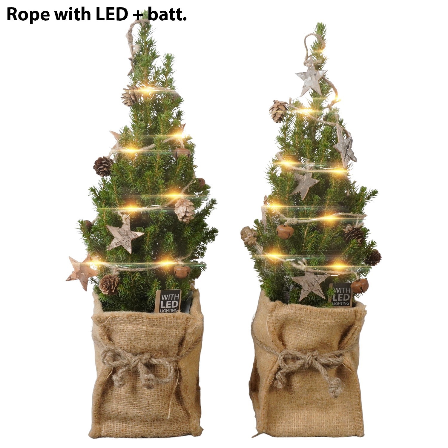 PTK26759 Ellwoodii in jute potcover mix met LED kerstboom, D 9