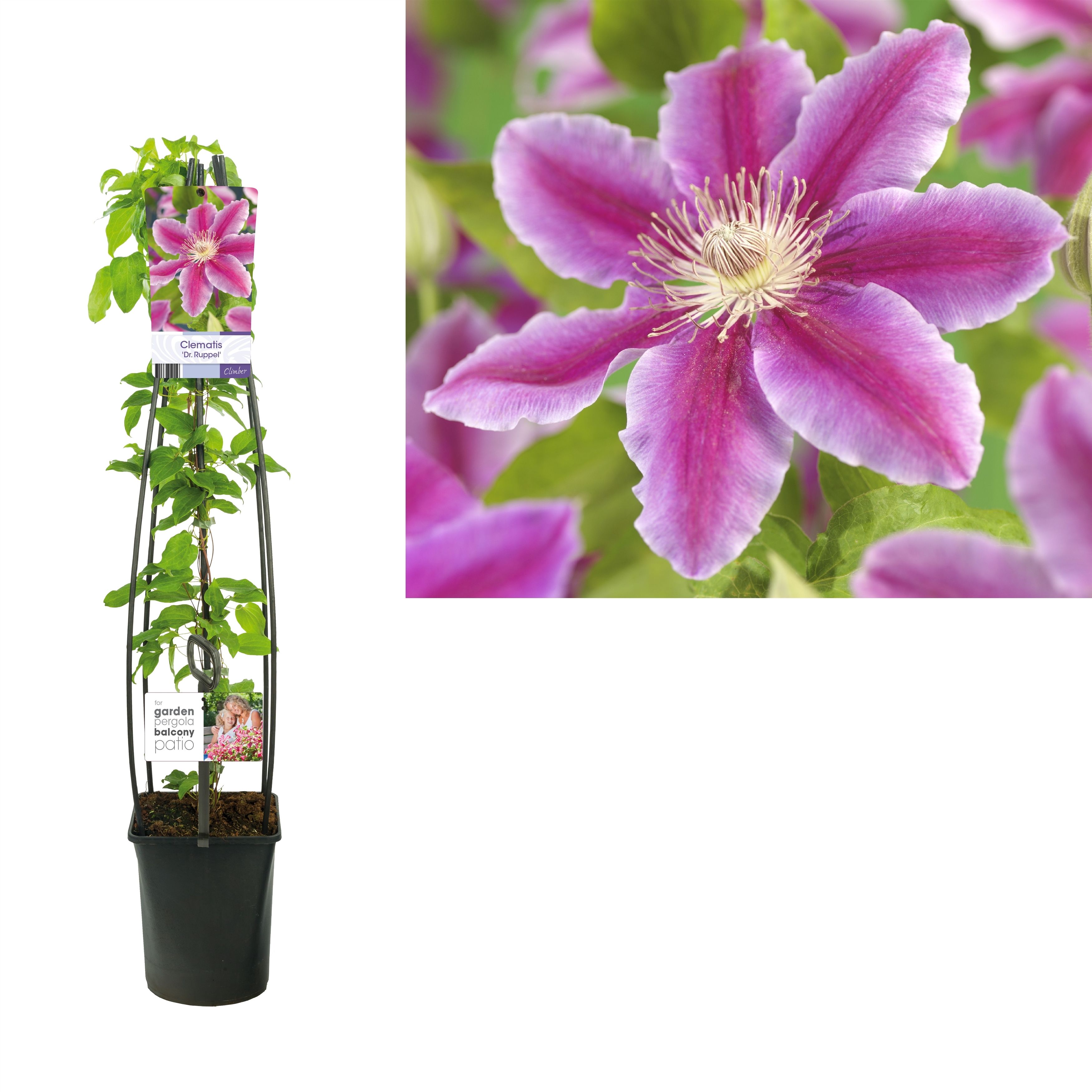 Clematis 'Dr. Ruppel' +light label, D 23 cm