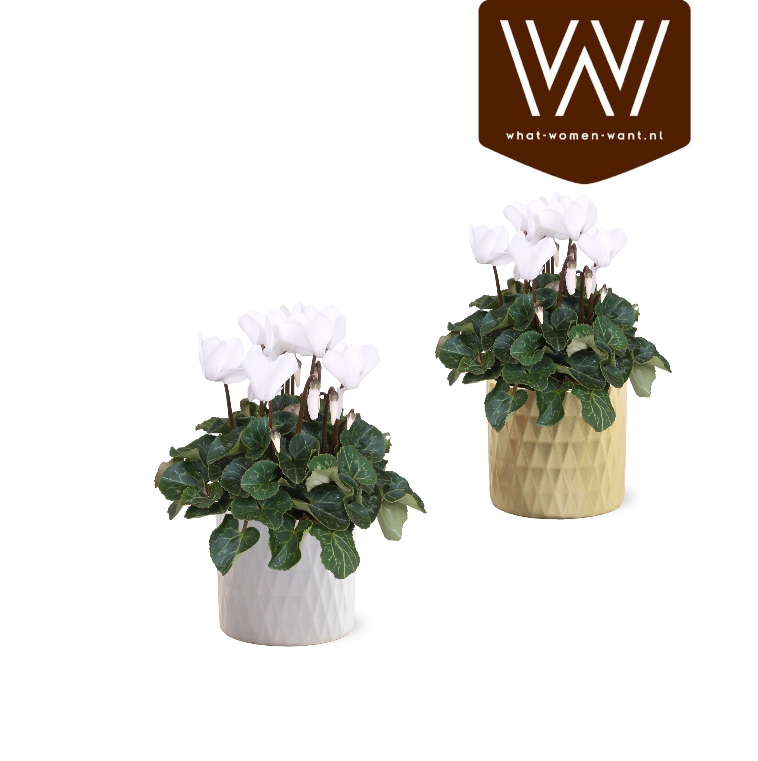 Collectie "Luxury World" Cyclamen wit in keramiek Paige