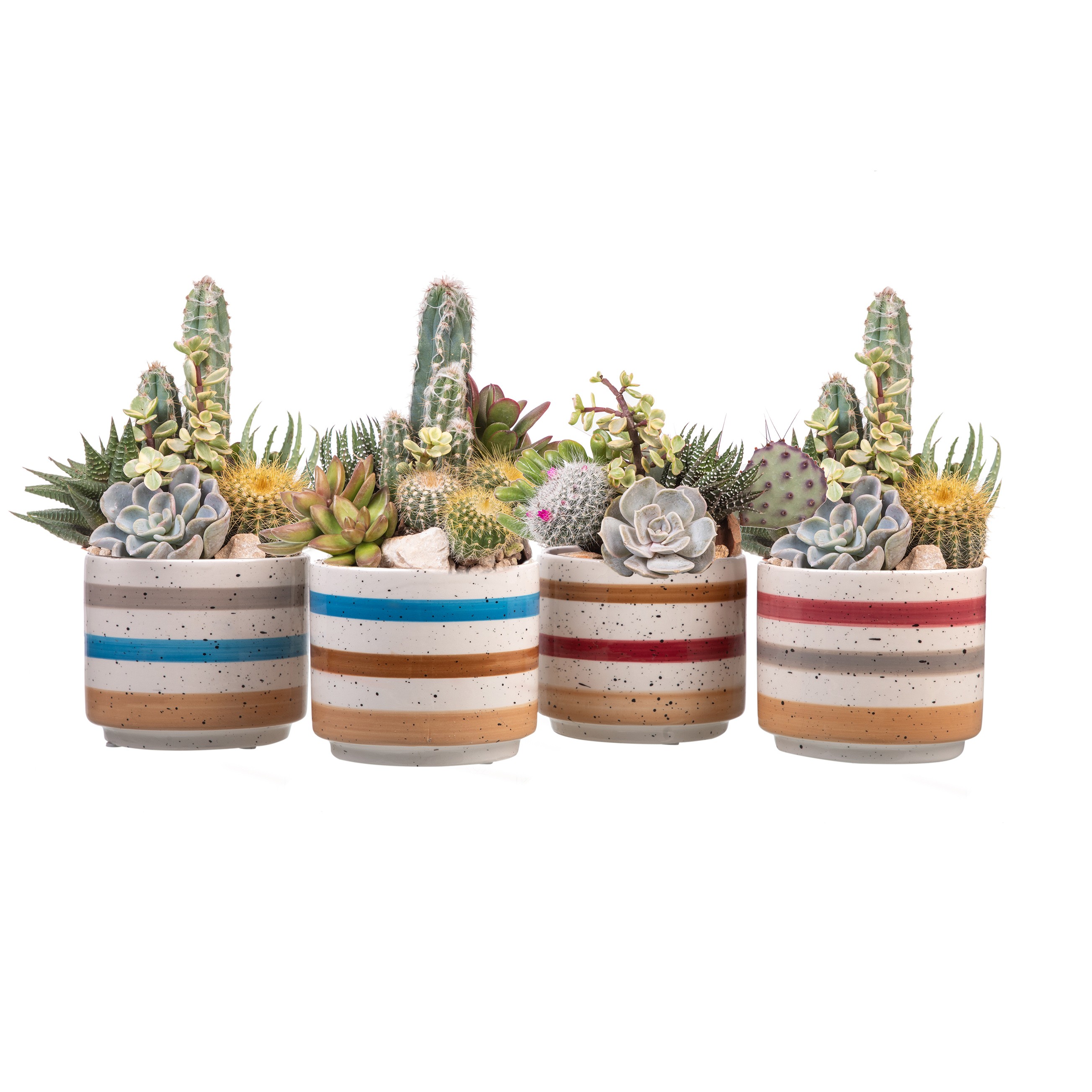 КОМПОЗИЦИЯ В КЕРАМИЧЕСКОМ ГОРШКЕ 'МИЛАН' Ø 10 - КАРТОННЫЙ ПОДНОС 8 ШТ. (КАКТУСЫ И СУККУЛЕНТЫ)