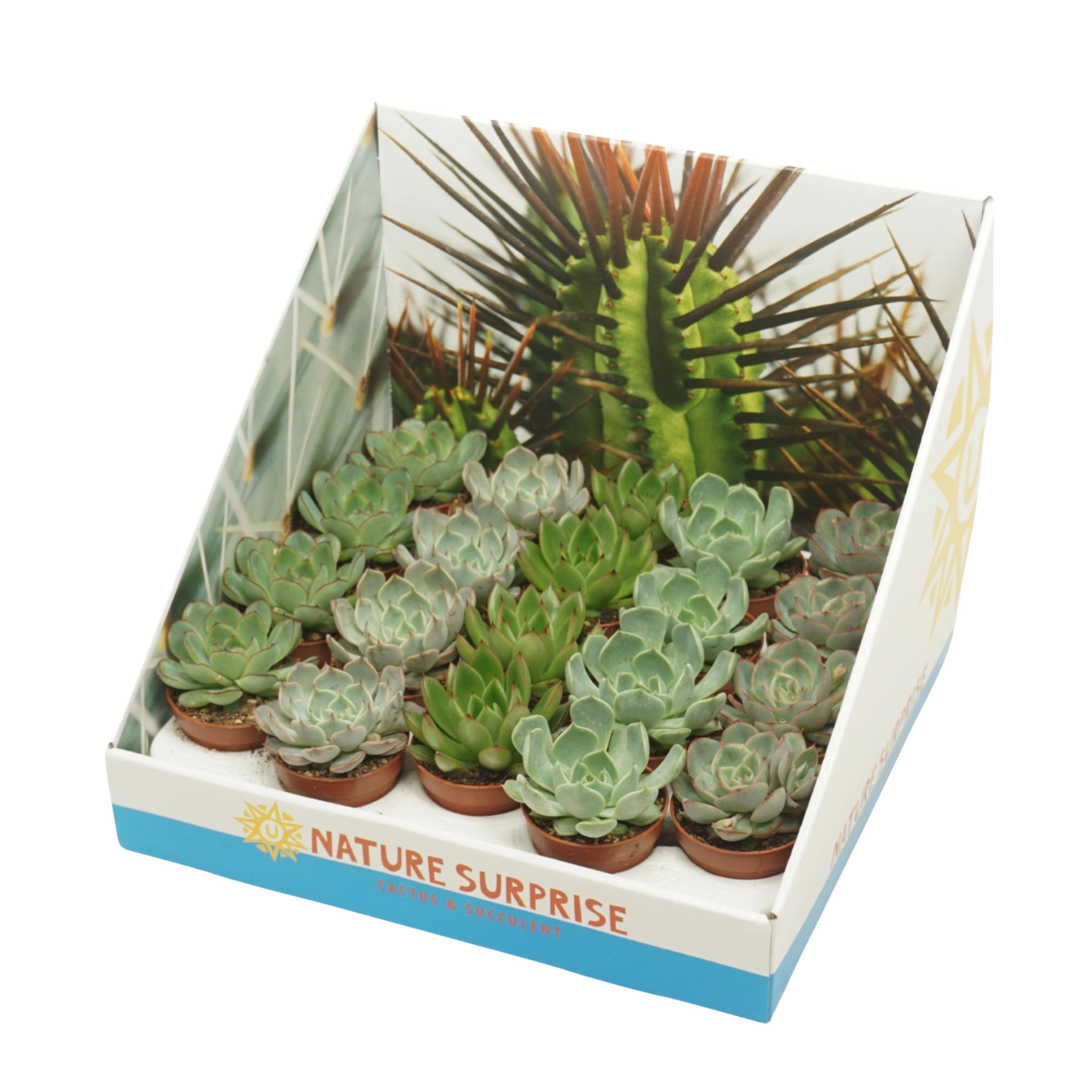 Echeveria mix 5,5 cm in presentatiedoos