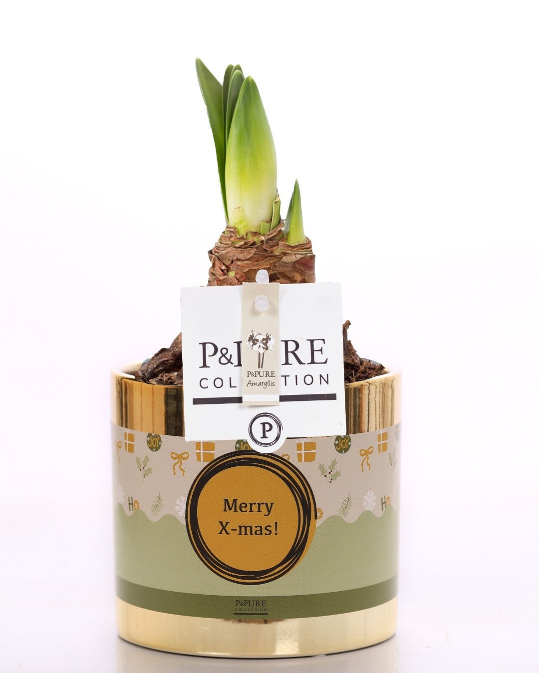 Hippeastrum white in P&PURE ceramics gold + XMAS sleeve
