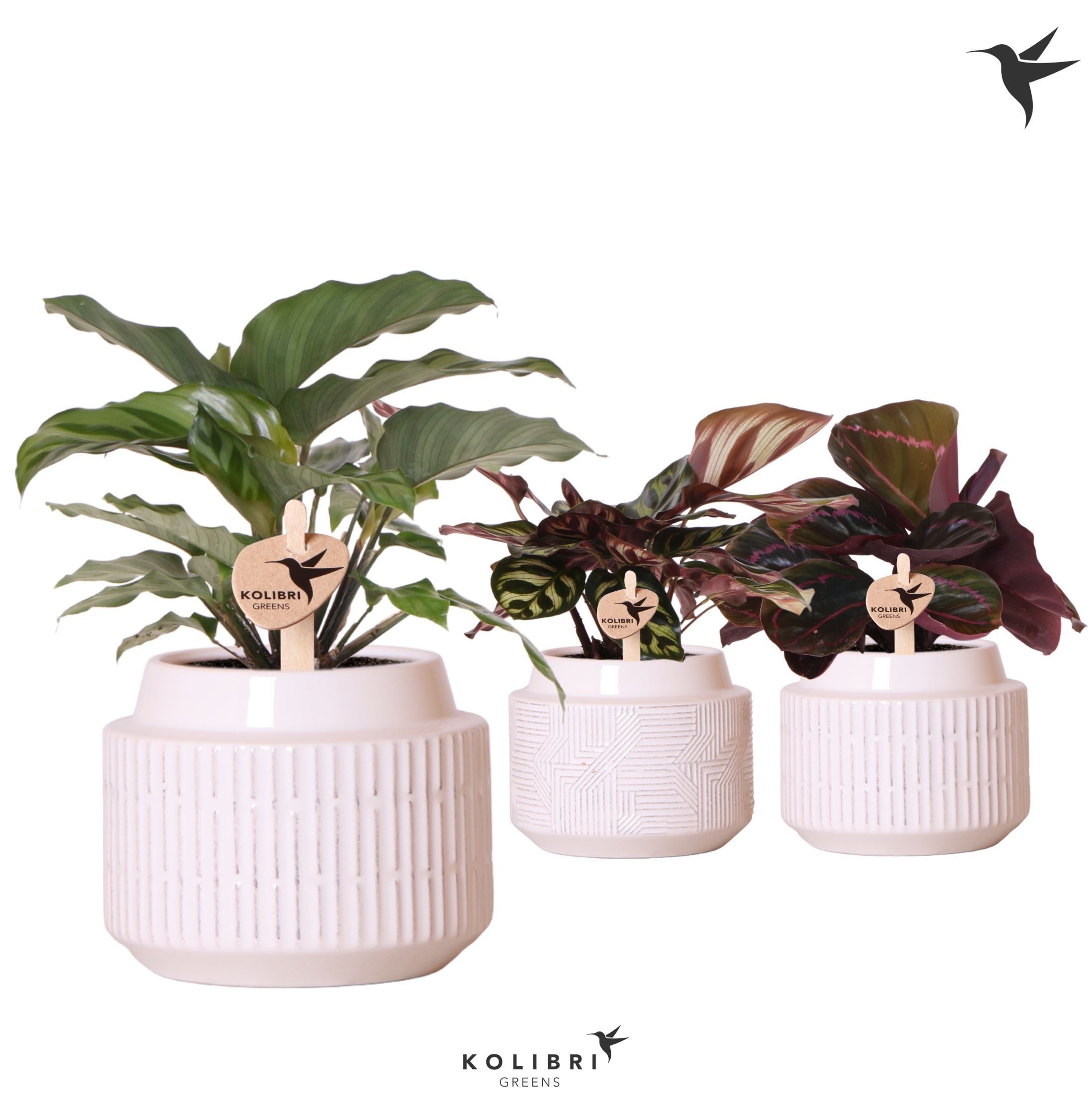 Kolibri Greens Calathea mix in Maze pot white