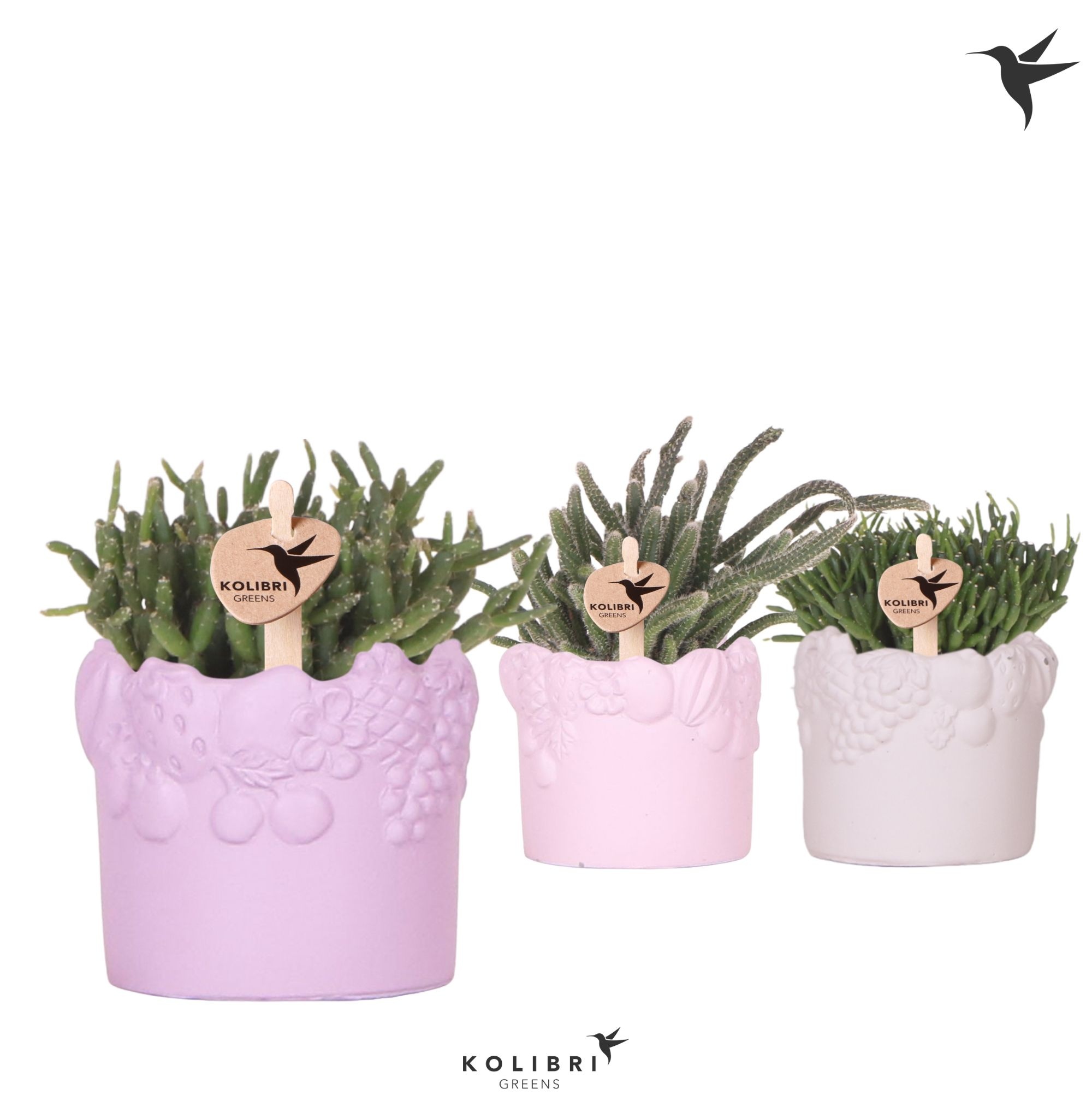 Kolibri Greens Rhipsalis mix in Fruity pot pink mix |