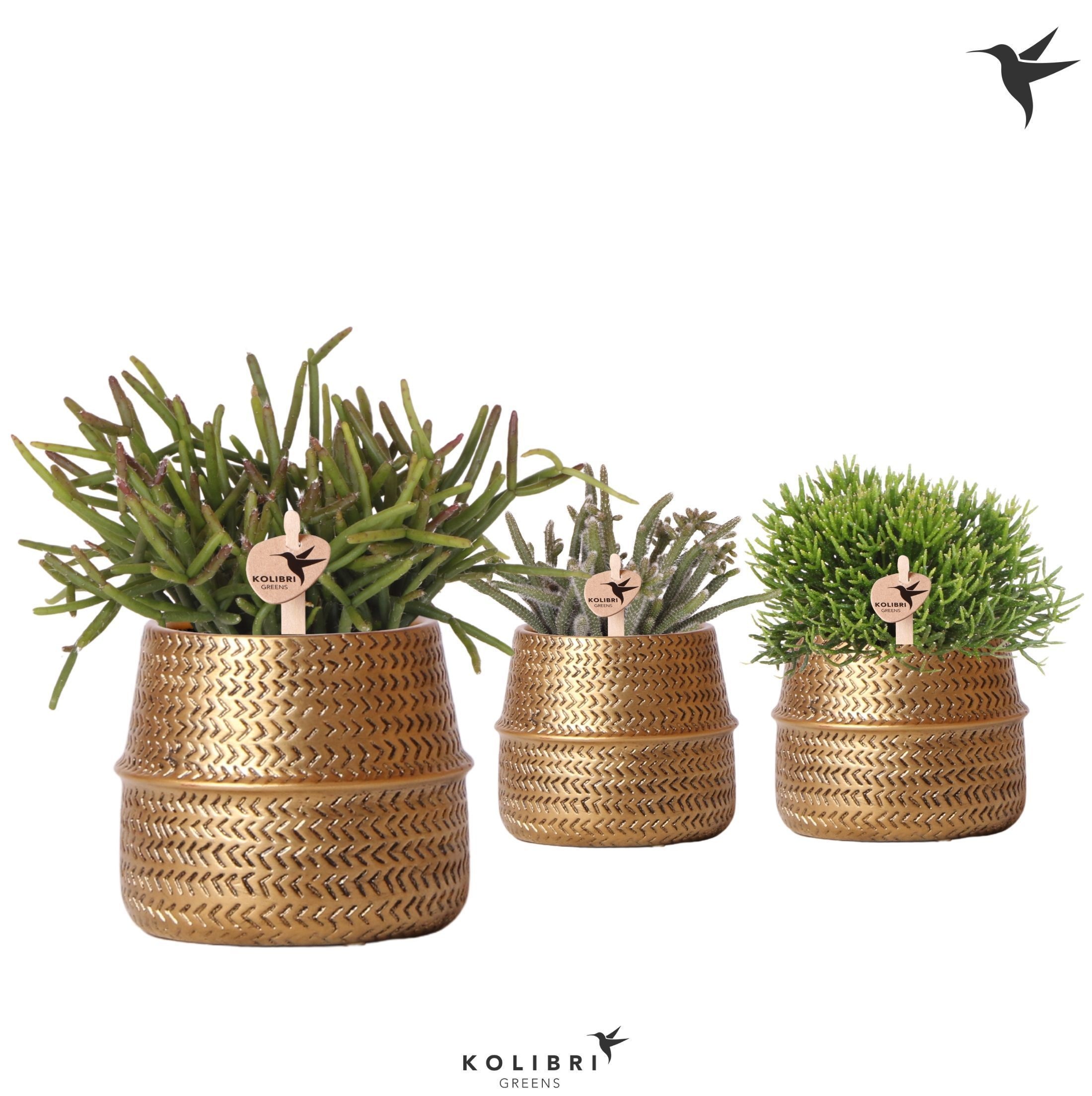Kolibri Greens Rhipsalis mix in Groove pot gold |