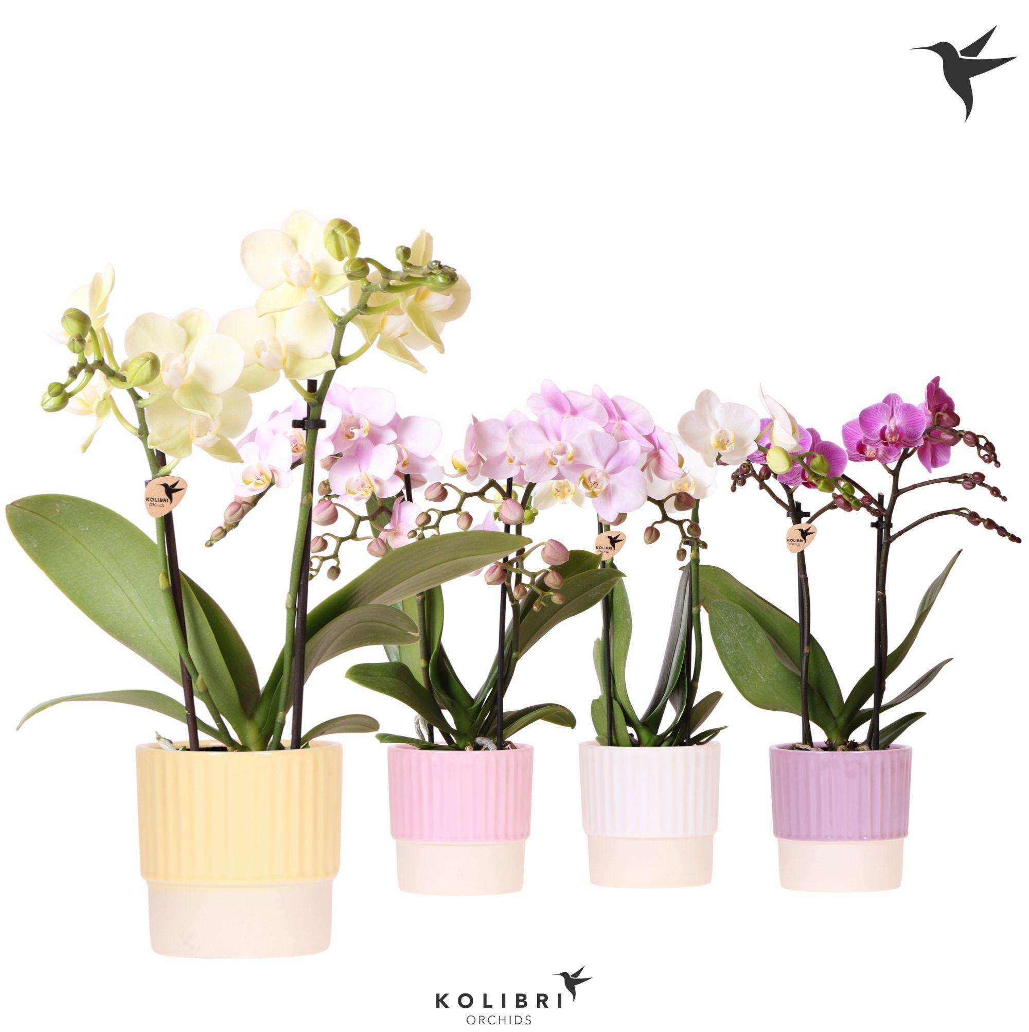 Kolibri Orchids Phalaenopsis mix 2 spike in Butter pot mix |