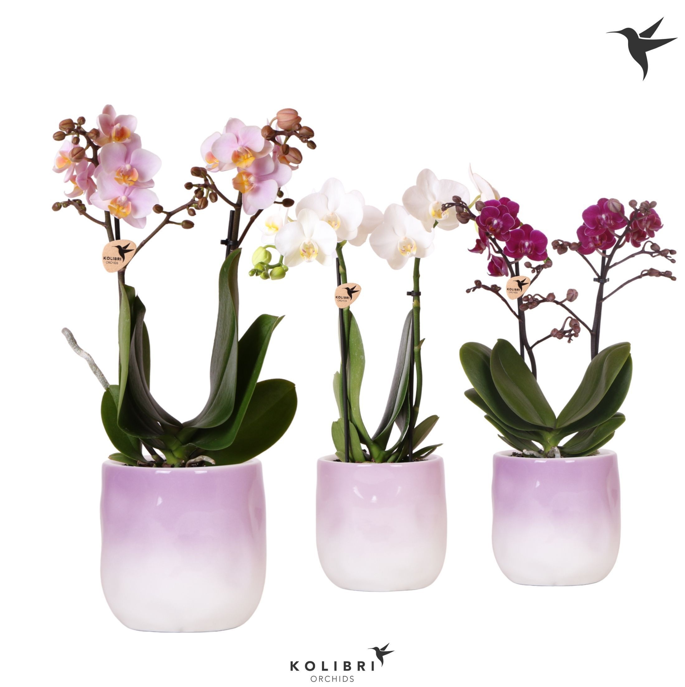 Kolibri Orchids Phalaenopsis mix 2 spike in Gradience pot lila