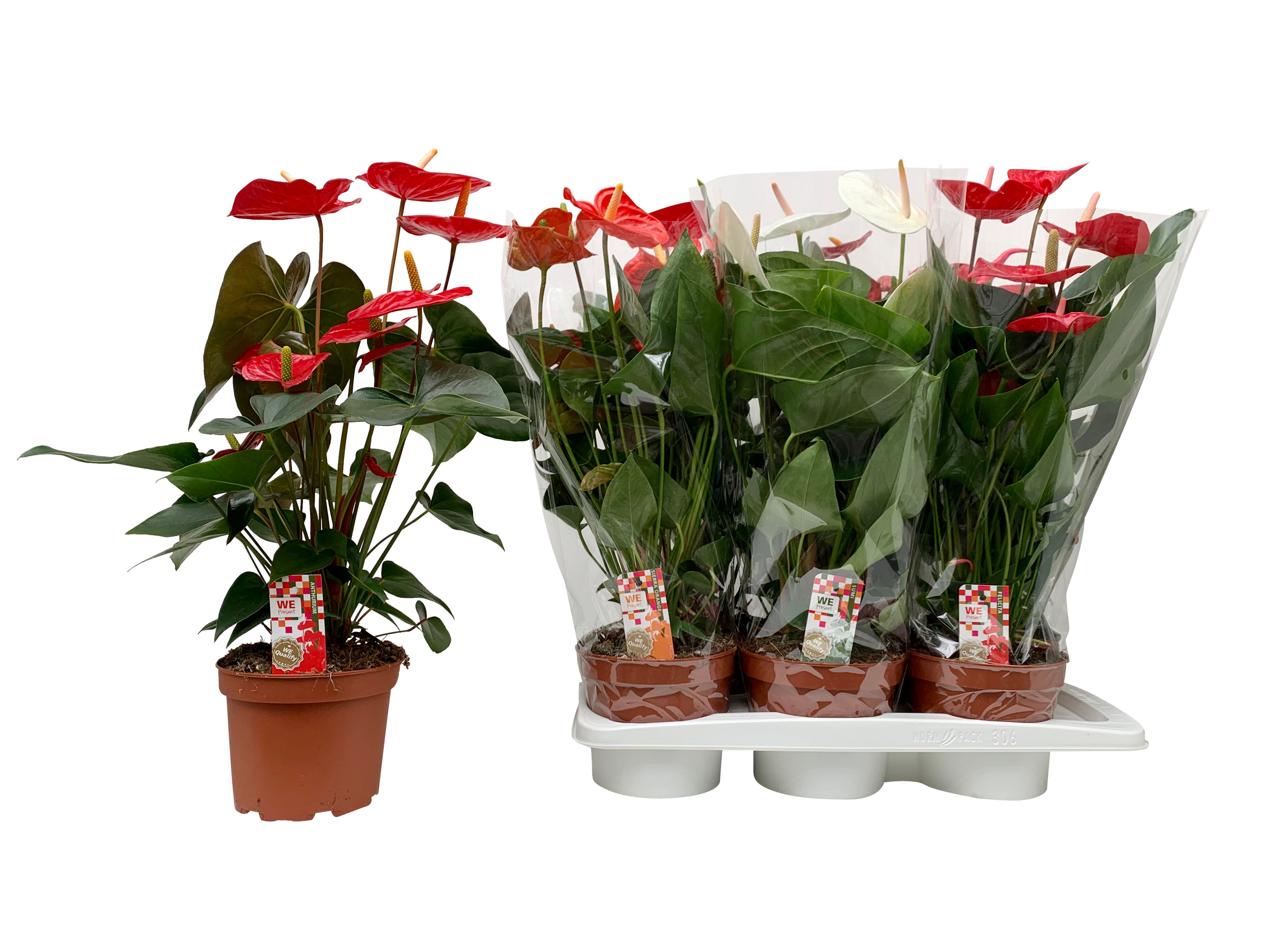 Anthurium (Andreanum Grp) gemengd 4 kleuren |