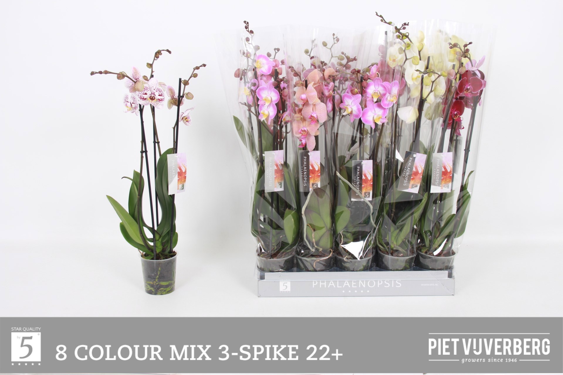 Phalaenopsis 3-spike 22+ 8 colours mix 65cm