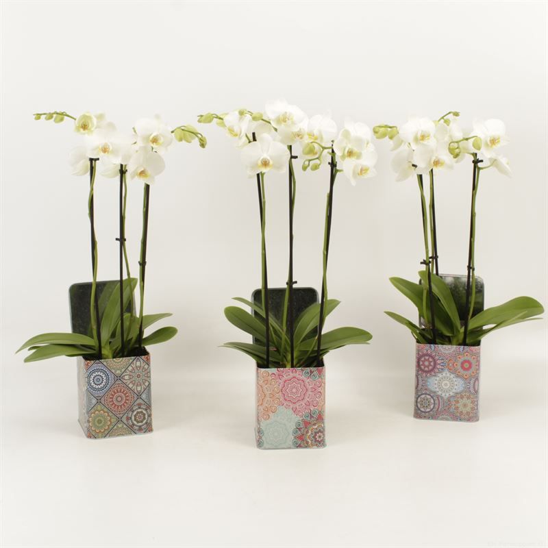 Phalaenopsis overig wit 3 tak wit in blik Barbara Geometrie