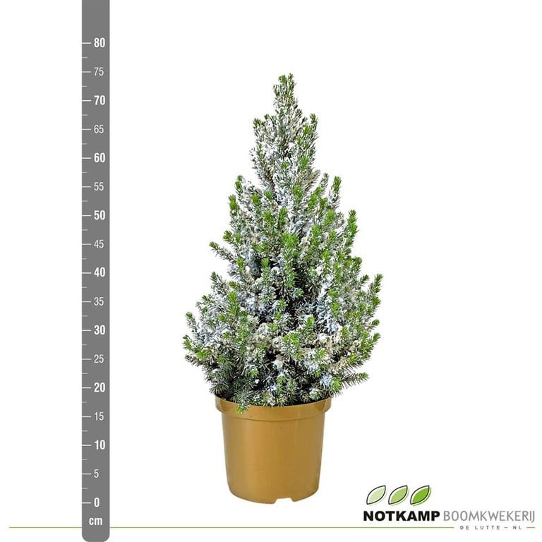 Picea gl. 'Conica' 50-60 cm Goud ( 70-80 cm ) Besneeuwd, D 21 cm