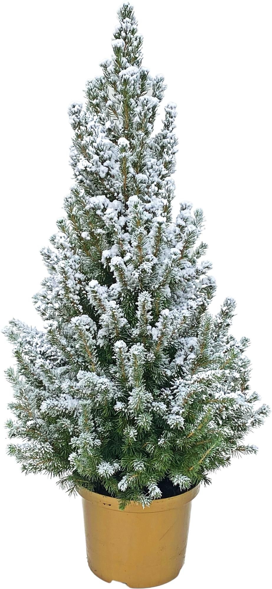 Picea gl. 'Conica' 70-80 cm Goud ( 90-100 cm ) Besneeuwd, D 23 cm