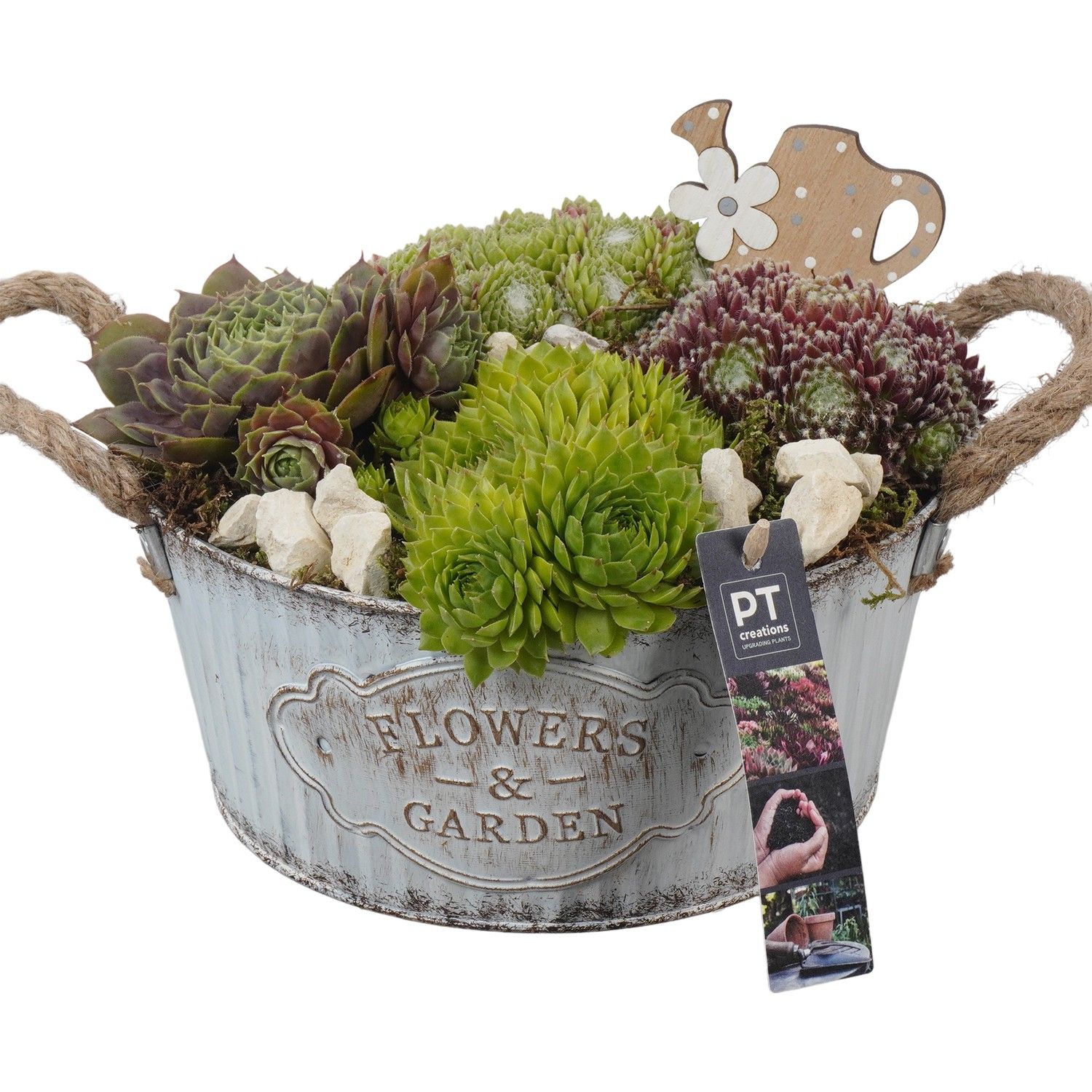 PTS2778 Arrangement Sempervivum in metaal pot