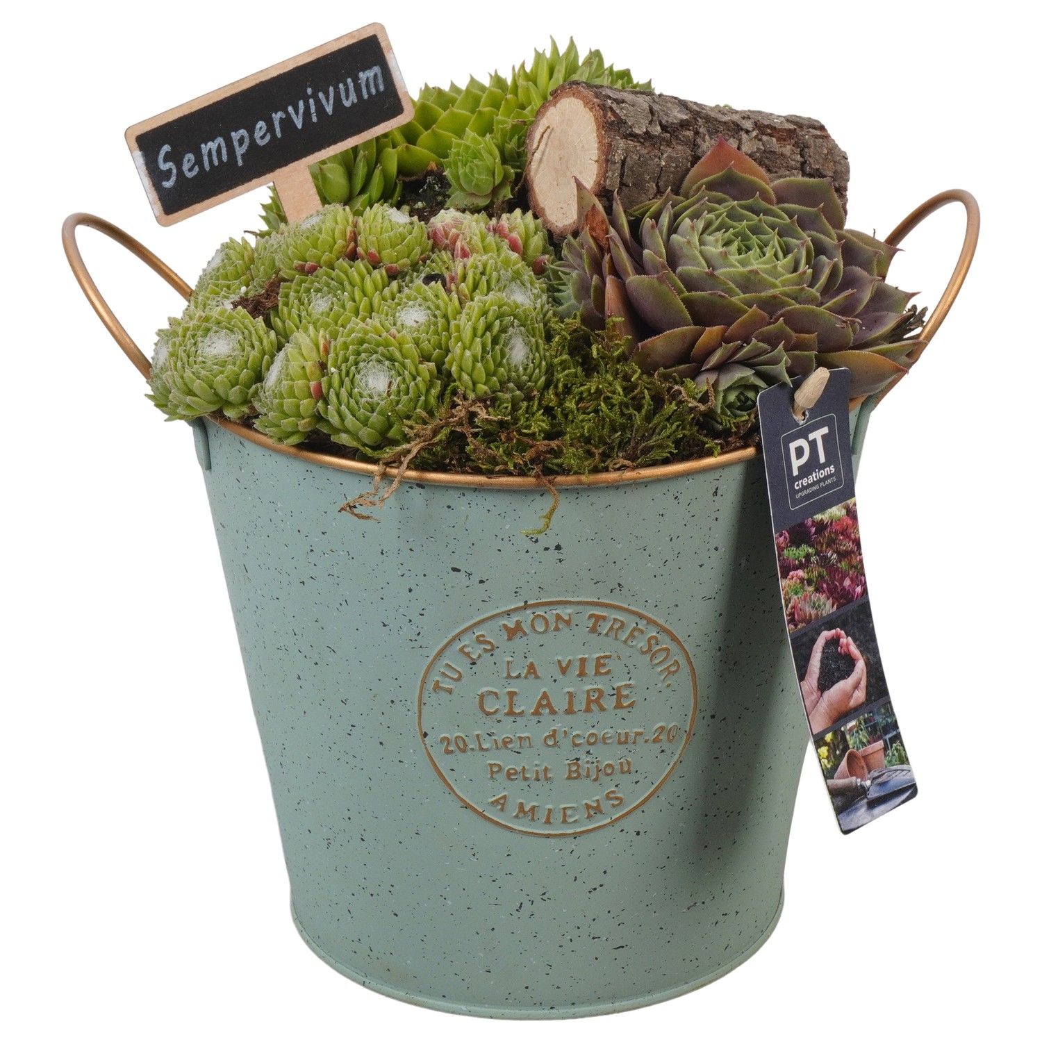 PTS2794 Arrangement Sempervivum in metaal pot