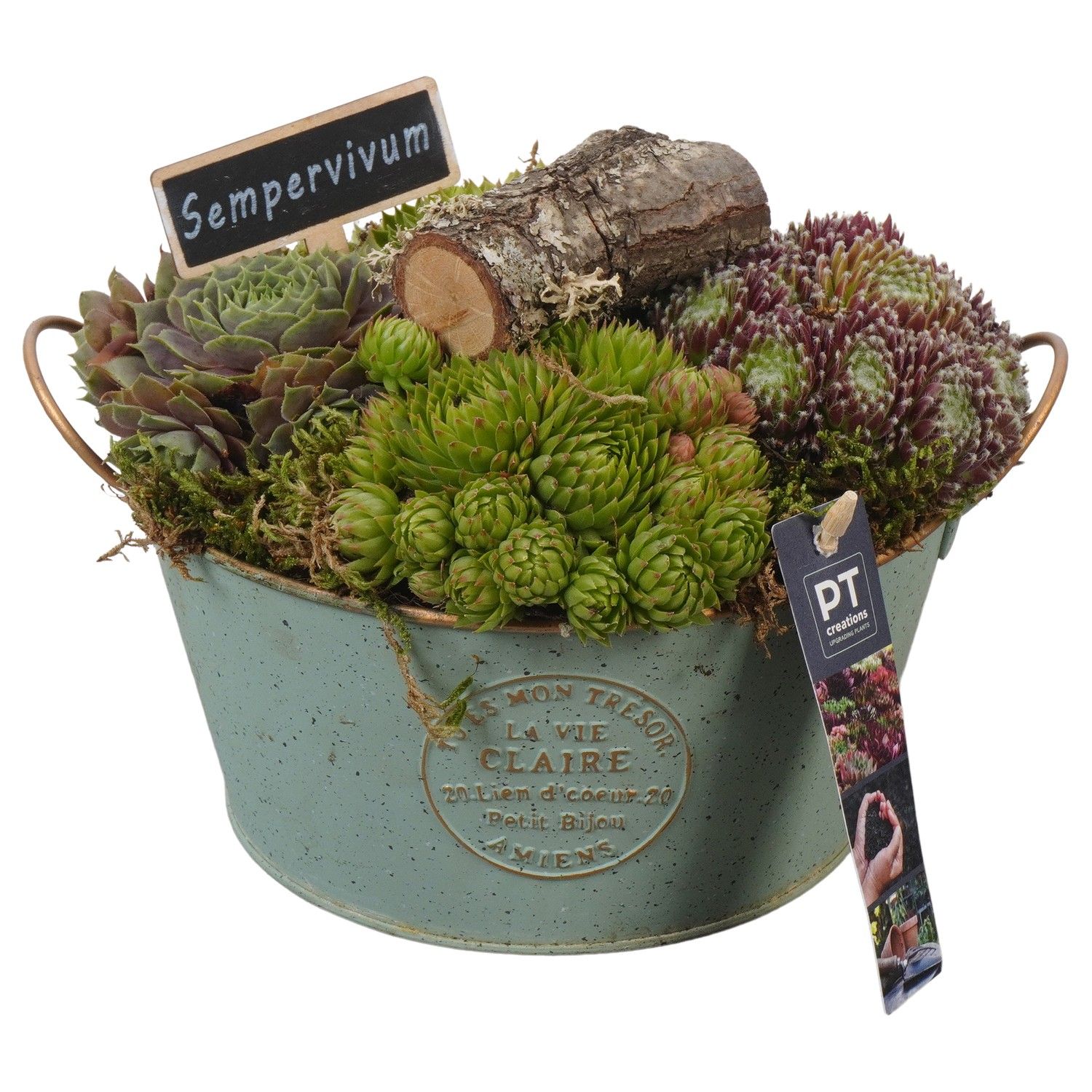 PTS2795 Arrangement Sempervivum in metaal pot
