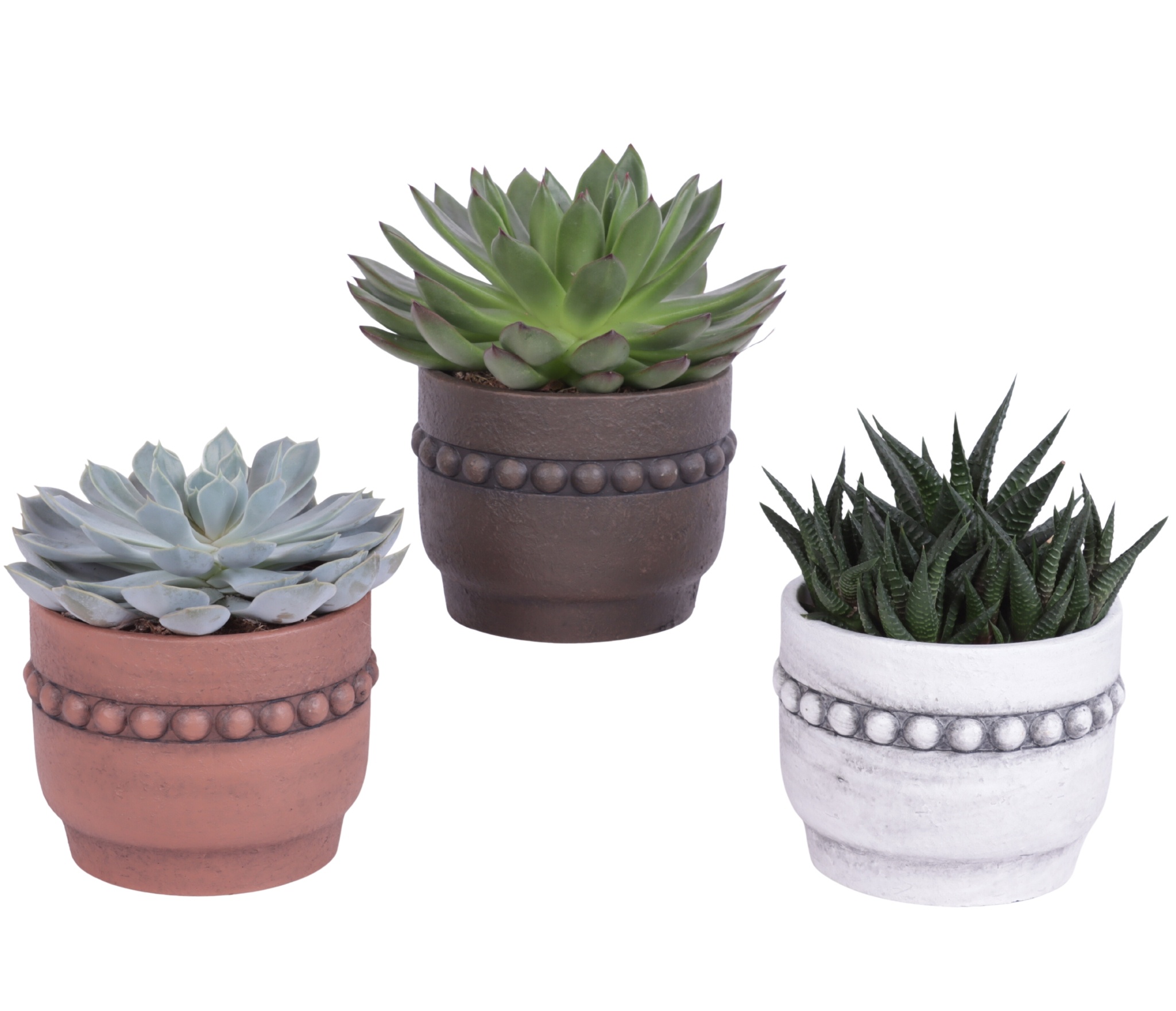 Succulenten mix Ø8,5cm in Ø10cm Ceramic Pot Beads Rim